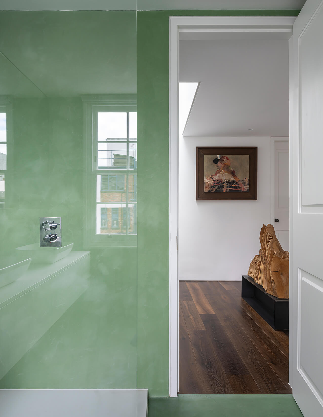 The project consisted of a full structural renovation of this prestigious five storey plus lower ground imposing building in Bloomsbury. Every part, except for the listed front façade, was renovated to an exacting standard with a challenging spine construction and staircase design. The works involved the demolishing of an outdated single storey rear extension which we replaced with a spectacular new side and rear extensions complete with two contemporary modern courtyards for family enjoyment. Microcement was used throughout.